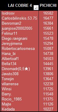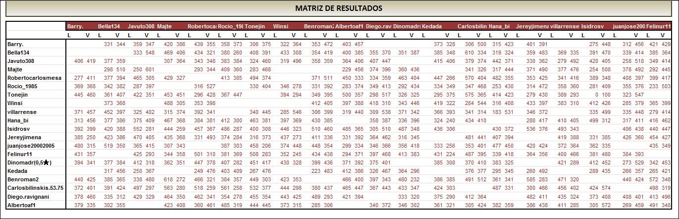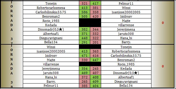 Igualmente quiero dar la enhorabuena a Jereyjimena y Juanjose20002005 que. a falta de los resultados de esta semana, estan igualados en el 4º puesto.