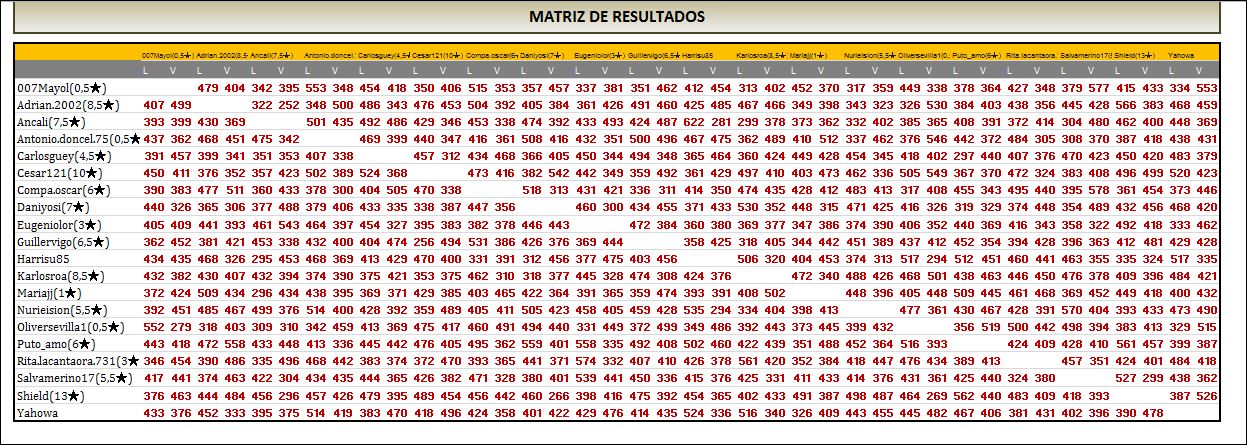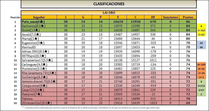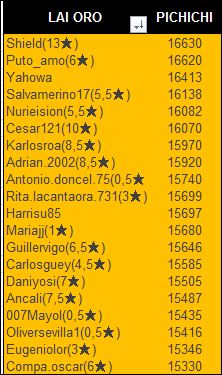 …. el aportar capturas de forma regular en el torneo. La pena es que de 20 jugadores participantes en liga oro solo 7 tengan la constancia y la voluntad de aportar su granito de arena.