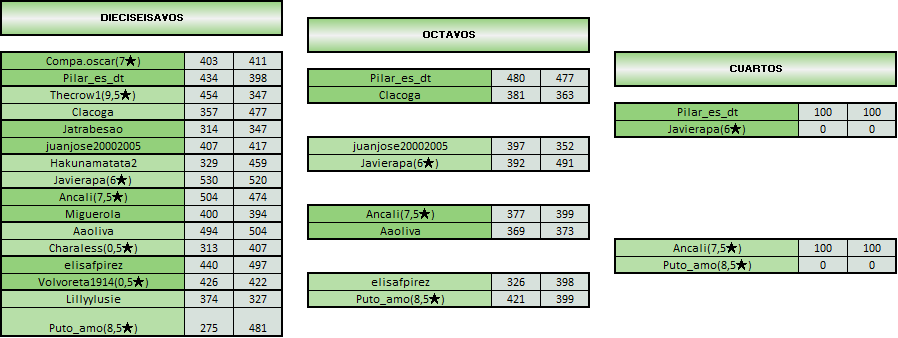 LAI PLATA: 4 primeros de cada grupo (8 en total)