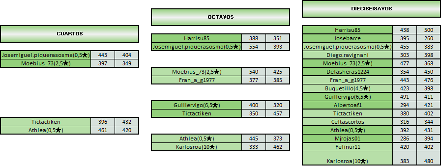 2. El plazo para cada eliminatoria será de 8 días. Si pasado ese plazo no se hubieran terminado las partidas, la organización decidirá en base a las PRUEBAS aportadas quién fue el jugador que retrasó la eliminatoria.