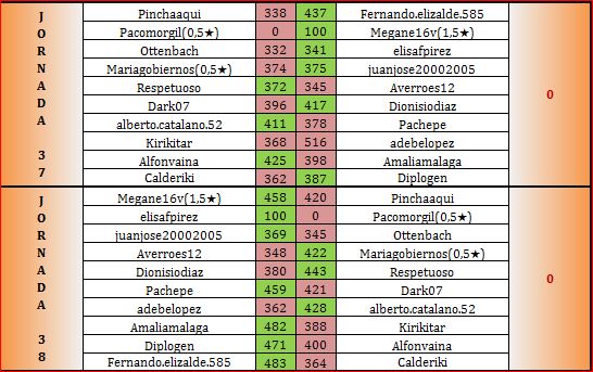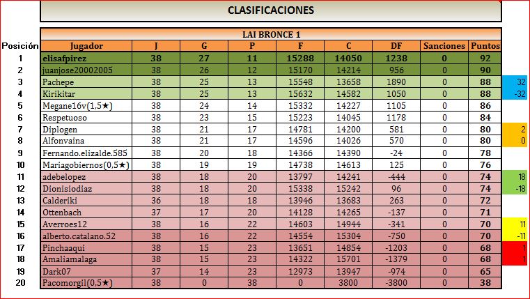 IMPORTANTE: Debido a la no renovación de varios jugadores del grupo, DIONISIODIAZ y CALDERIKI mantienen su puesto en bronce. Las posiciones de promoción de descenso y descenso directo son: