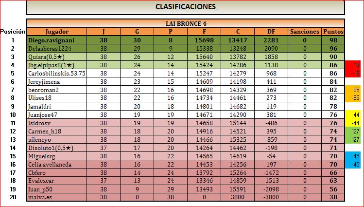 IMPORTANTE: Debido a la no renovación de un jugador del grupo, las posiciones de promoción de descenso y descenso directo quedan: