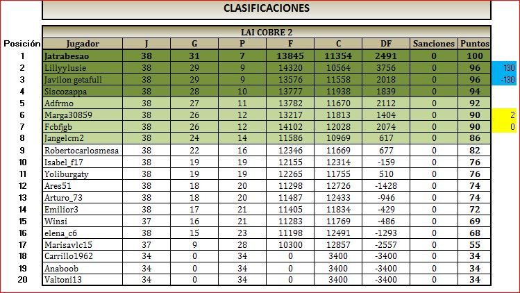 IMPORTANTE: Debido a la no renovación de una jugadora del grupo, las posiciones de ascenso directo promoción de ascenso y quedan: