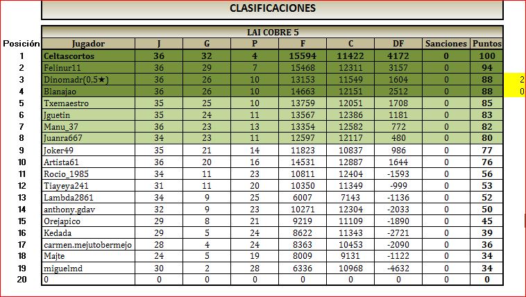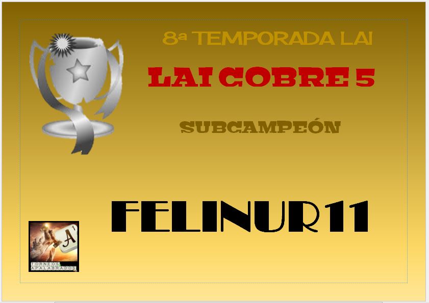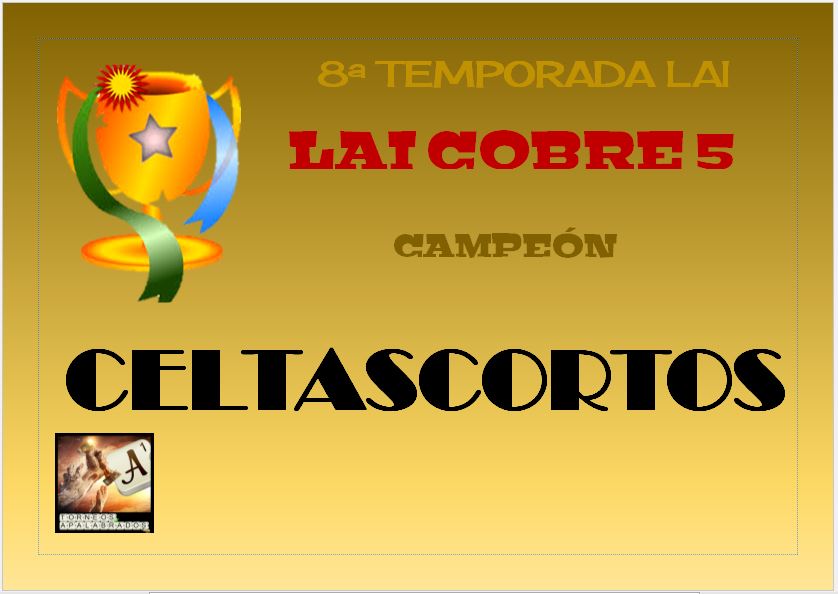 Saludos y felicidades por ser el vencedor y ocupar , el primer puesto en la clasificación final , de esta » LAI COBRE 5 JORNADAS » .