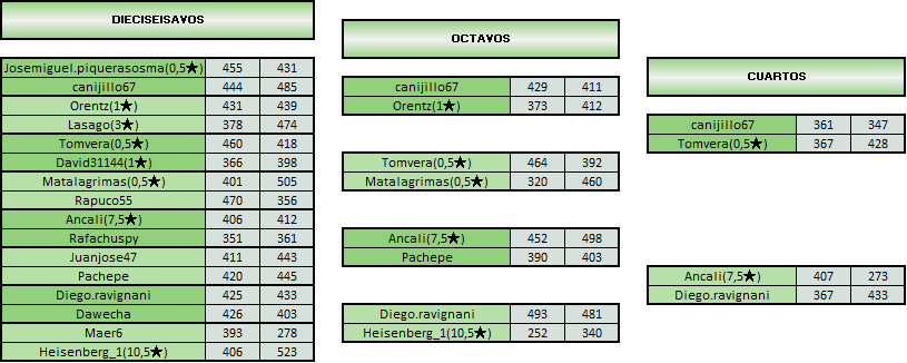 LAI PLATA: 4 primeros de cada grupo (8 en total)