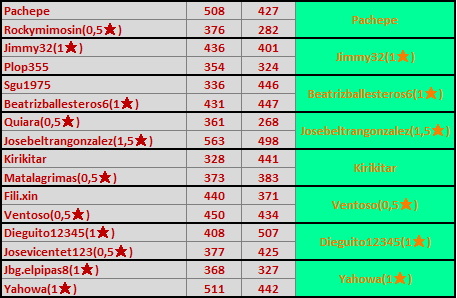 • Ganará el enfrentamiento aquél que gane las dos partidas ó, en caso de empate, aquél que tenga mayor diferencia de puntos en el cómputo de ambas partidas. En caso de persistir el empate, ganará el jugador que sume más puntos como visitante.