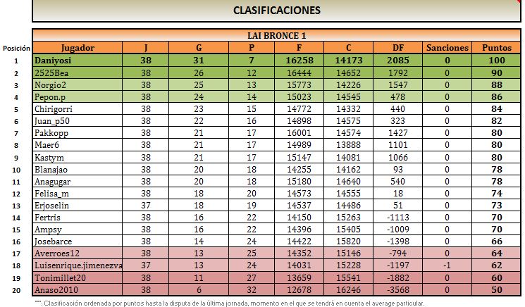 Esperamos que estos cambios beneficien el buen ambiente, y se terminen todas las partidas