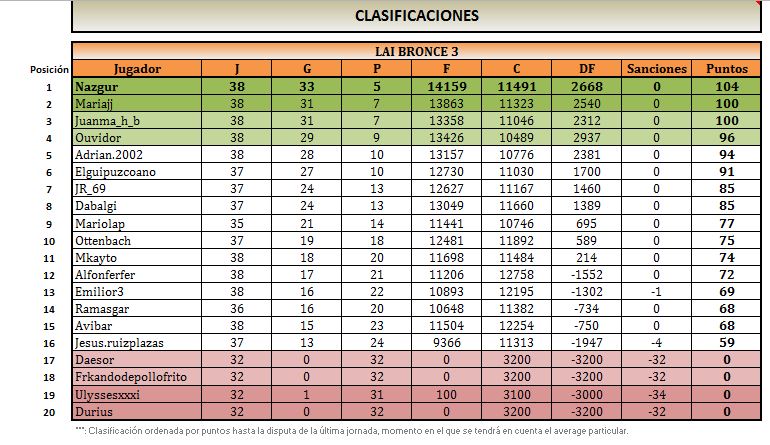 Esperamos que estos cambios beneficien el buen ambiente, y se terminen todas las partidas