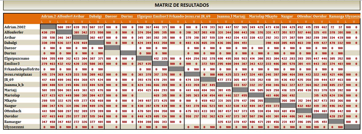 2. El PLAZO LÍMITE PARA EL ENVÍO DE RESULTADOS, se mantiene los domingos ( 9 días de juego), pero CAMBIA LA HORA LÍMITE, que será a las 21:00 horas DEL DOMINGO, para que la gente no tenga que estar hasta altas horas, ya que muchos madrugan, y las 24:00 era una hora tardía.