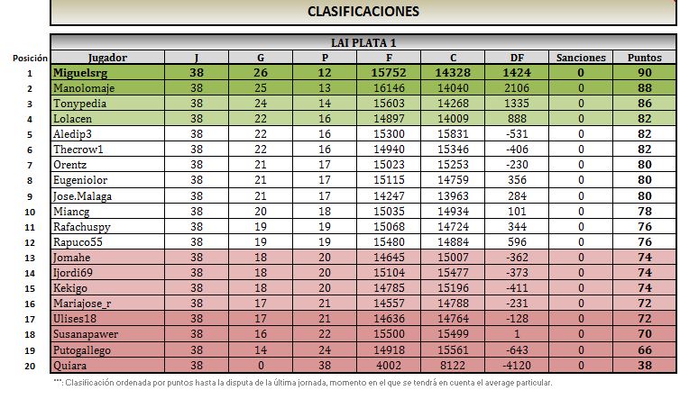 LAI PLATA 1 ESTADÍSTICAS
