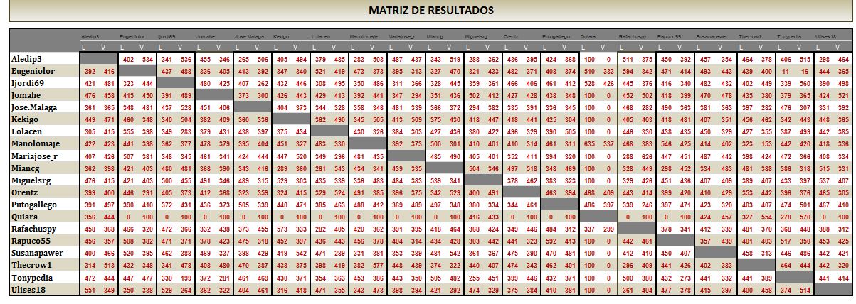 2. El PLAZO LÍMITE PARA EL ENVÍO DE RESULTADOS, se mantiene los domingos ( 9 días de juego), pero CAMBIA LA HORA LÍMITE, que será a las 21:00 horas DEL DOMINGO, para que la gente no tenga que estar hasta altas horas, ya que muchos madrugan, y las 24:00 era una hora tardía.