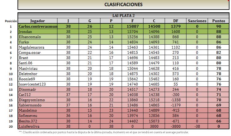 LAI PLATA 2 CLASIFICACION