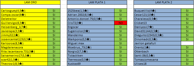 NECESITAMOS SABER LOS JUGADORES QUE VAN A CONTINUAR JUGANDO PARA PREPARAR LA PROMOCIÓN DE LA TEMPORADA 1 Y LOS GRUPOS DE LA TEMPORADA 2.