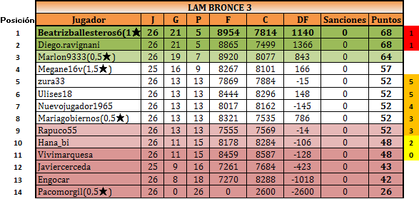 RAPUCO55 mantiene su puesto en la división Bronce, por tratarse del 9º puesto de los grupos de Bronce con mayor puntuación.