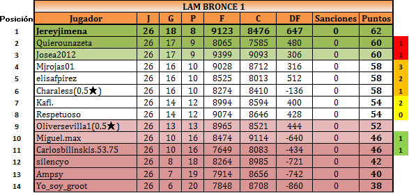 OLIVERSEVILLA1 y MIGUEL.MAX mantienen su puesto en la división Bronce.