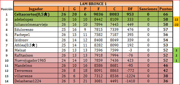 - MANTIENE SU PUESTO EN BRONCE: