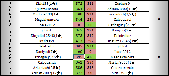 Jornada 25. quierounazeta (364) adrian.2002 (286). Me despido del Torneo agradeciendo la organización y felicitando a los jugadores que hayan ascendido.