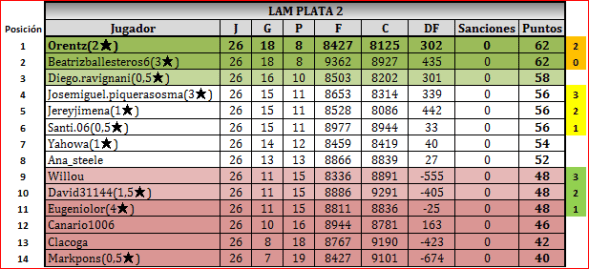 Gracias, me sumo a las felicitaciones a los dos ascendidos y al resto los jugadores. Sin duda todos han jugado en un gran nivel! Yo me tomare un descanso, asi que no jugare la proxima temporada ni la promocion. Pido a la organizacion que tome nota y les agradezco x hacer estos torneos. Los saludo a todos y hasta la proxima!