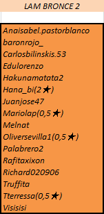 - Truffita, Disoluto1, Miguel.max, Terroresss y Palabrero2 mantienen su puesto en Bronce.
