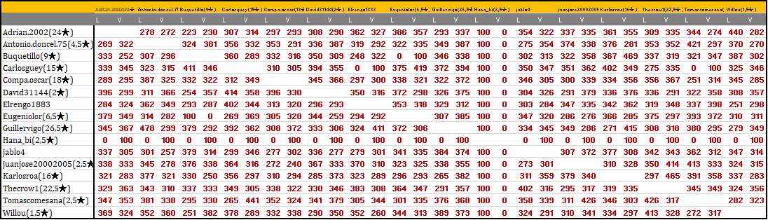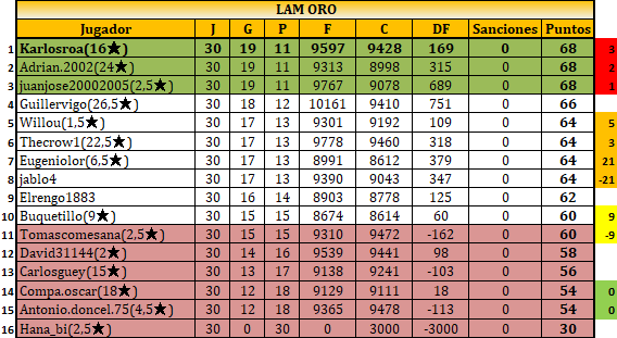 Solo me queda la espina de las jornadas 27 y 28 en la que juanjose publicó fuera de plazo y la organización le dió ese margen de cortesía en el cual no estaba muy de acuerdo pero está acatado.