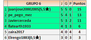 Deja un comentarioEn está página se irán publicando los resultados de las diferentes partidas, siendo ambos jugadores responsables de subirlos o de comprobar que ya hayan sido publicados insertando un COMENTARIO en la parte inferior de la pantalla (opción “Deja tu comentario”), indicando el nombre de los dos jugadores y los puntos obtenidos en la partida.