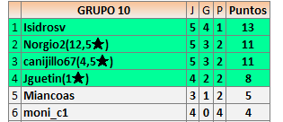 Deja un comentarioEn está página se irán publicando los resultados de las diferentes partidas, siendo ambos jugadores responsables de subirlos o de comprobar que ya hayan sido publicados insertando un COMENTARIO en la parte inferior de la pantalla (opción “Deja tu comentario”), indicando el nombre de los dos jugadores y los puntos obtenidos en la partida.