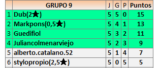 Deja un comentarioEn está página se irán publicando los resultados de las diferentes partidas, siendo ambos jugadores responsables de subirlos o de comprobar que ya hayan sido publicados insertando un COMENTARIO en la parte inferior de la pantalla (opción “Deja tu comentario”), indicando el nombre de los dos jugadores y los puntos obtenidos en la partida.