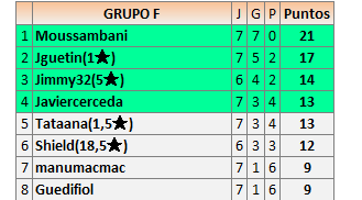 Deja un comentarioEn está página se irán publicando los resultados de las diferentes partidas, siendo ambos jugadores responsables de subirlos o de comprobar que ya hayan sido publicados insertando un COMENTARIO en la parte inferior de la pantalla (opción “Deja tu comentario”), indicando el nombre de los dos jugadores y los puntos obtenidos en la partida.