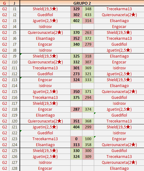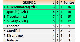 1En está página se irán publicando los resultados de las diferentes partidas, siendo ambos jugadores responsables de subirlos o de comprobar que ya hayan sido publicados insertando un COMENTARIO en la parte inferior de la pantalla (opción “Deja tu comentario”), indicando el nombre de los dos jugadores y los puntos obtenidos en la partida.
