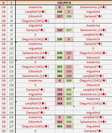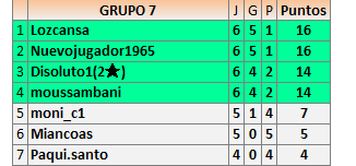 Deja un comentarioEn está página se irán publicando los resultados de las diferentes partidas, siendo ambos jugadores responsables de subirlos o de comprobar que ya hayan sido publicados insertando un COMENTARIO en la parte inferior de la pantalla (opción “Deja tu comentario”), indicando el nombre de los dos jugadores y los puntos obtenidos en la partida.