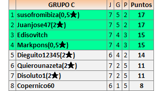 En el grupo C hubo un error, aparecía mastro.piero y debería ser Juanjose47