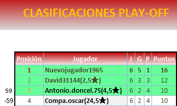 En los playoffs se mantendrán ocultos los resultados para que ningún jugador especule con ellos.