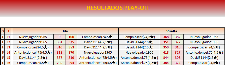 Fin PLAY OFF VUELTA: 26 de noviembre a las 21:00