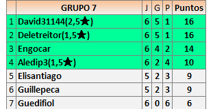 Deja un comentarioEn está página se irán publicando los resultados de las diferentes partidas, siendo ambos jugadores responsables de subirlos o de comprobar que ya hayan sido publicados insertando un COMENTARIO en la parte inferior de la pantalla (opción “Deja tu comentario”), indicando el nombre de los dos jugadores y los puntos obtenidos en la partida.