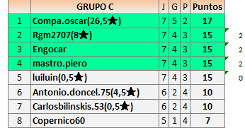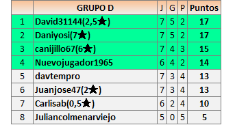 Deja un comentarioEn está página se irán publicando los resultados de las diferentes partidas, siendo ambos jugadores responsables de subirlos o de comprobar que ya hayan sido publicados insertando un COMENTARIO en la parte inferior de la pantalla (opción “Deja tu comentario”), indicando el nombre de los dos jugadores y los puntos obtenidos en la partida.