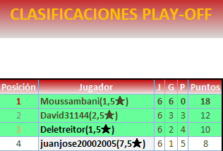 En los playoffs se mantendrán ocultos los resultados para que ningún jugador especule con ellos.