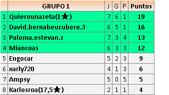 2En está página se irán publicando los resultados de las diferentes partidas, siendo ambos jugadores responsables de subirlos o de comprobar que ya hayan sido publicados insertando un COMENTARIO en la parte inferior de la pantalla (opción “Deja tu comentario”), indicando el nombre de los dos jugadores y los puntos obtenidos en la partida.