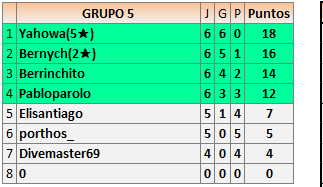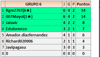 Deja un comentarioEn está página se irán publicando los resultados de las diferentes partidas, siendo ambos jugadores responsables de subirlos o de comprobar que ya hayan sido publicados insertando un COMENTARIO en la parte inferior de la pantalla (opción “Deja tu comentario”), indicando el nombre de los dos jugadores y los puntos obtenidos en la partida.