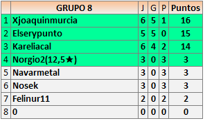 Deja un comentarioEn está página se irán publicando los resultados de las diferentes partidas, siendo ambos jugadores responsables de subirlos o de comprobar que ya hayan sido publicados insertando un COMENTARIO en la parte inferior de la pantalla (opción “Deja tu comentario”), indicando el nombre de los dos jugadores y los puntos obtenidos en la partida.