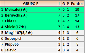 Deja un comentarioEn está página se irán publicando los resultados de las diferentes partidas, siendo ambos jugadores responsables de subirlos o de comprobar que ya hayan sido publicados insertando un COMENTARIO en la parte inferior de la pantalla (opción “Deja tu comentario”), indicando el nombre de los dos jugadores y los puntos obtenidos en la partida.