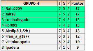 Deja un comentarioEn está página se irán publicando los resultados de las diferentes partidas, siendo ambos jugadores responsables de subirlos o de comprobar que ya hayan sido publicados insertando un COMENTARIO en la parte inferior de la pantalla (opción “Deja tu comentario”), indicando el nombre de los dos jugadores y los puntos obtenidos en la partida.