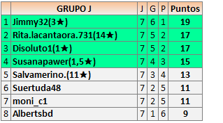 Deja un comentarioEn está página se irán publicando los resultados de las diferentes partidas, siendo ambos jugadores responsables de subirlos o de comprobar que ya hayan sido publicados insertando un COMENTARIO en la parte inferior de la pantalla (opción “Deja tu comentario”), indicando el nombre de los dos jugadores y los puntos obtenidos en la partida.