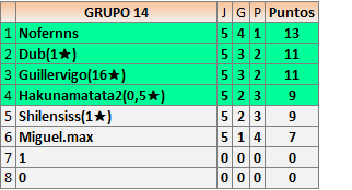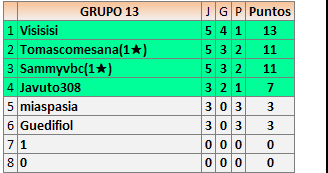 Deja un comentarioEn está página se irán publicando los resultados de las diferentes partidas, siendo ambos jugadores responsables de subirlos o de comprobar que ya hayan sido publicados insertando un COMENTARIO en la parte inferior de la pantalla (opción “Deja tu comentario”), indicando el nombre de los dos jugadores y los puntos obtenidos en la partida.