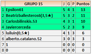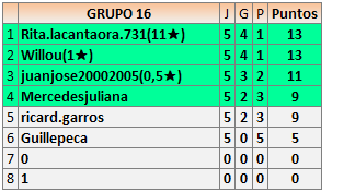 Deja un comentarioEn está página se irán publicando los resultados de las diferentes partidas, siendo ambos jugadores responsables de subirlos o de comprobar que ya hayan sido publicados insertando un COMENTARIO en la parte inferior de la pantalla (opción “Deja tu comentario”), indicando el nombre de los dos jugadores y los puntos obtenidos en la partida.