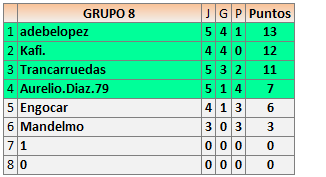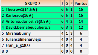 Deja un comentarioEn está página se irán publicando los resultados de las diferentes partidas, siendo ambos jugadores responsables de subirlos o de comprobar que ya hayan sido publicados insertando un COMENTARIO en la parte inferior de la pantalla (opción “Deja tu comentario”), indicando el nombre de los dos jugadores y los puntos obtenidos en la partida.