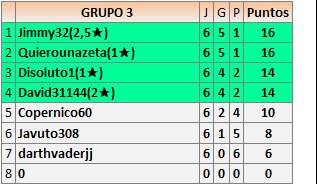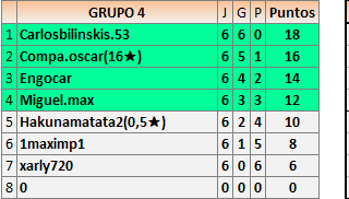 Deja un comentarioEn está página se irán publicando los resultados de las diferentes partidas, siendo ambos jugadores responsables de subirlos o de comprobar que ya hayan sido publicados insertando un COMENTARIO en la parte inferior de la pantalla (opción “Deja tu comentario”), indicando el nombre de los dos jugadores y los puntos obtenidos en la partida.