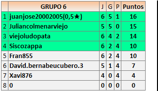 Deja un comentarioEn está página se irán publicando los resultados de las diferentes partidas, siendo ambos jugadores responsables de subirlos o de comprobar que ya hayan sido publicados insertando un COMENTARIO en la parte inferior de la pantalla (opción “Deja tu comentario”), indicando el nombre de los dos jugadores y los puntos obtenidos en la partida.