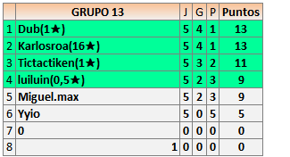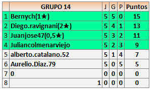 Deja un comentarioEn está página se irán publicando los resultados de las diferentes partidas, siendo ambos jugadores responsables de subirlos o de comprobar que ya hayan sido publicados insertando un COMENTARIO en la parte inferior de la pantalla (opción “Deja tu comentario”), indicando el nombre de los dos jugadores y los puntos obtenidos en la partida.