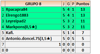 Deja un comentarioEn está página se irán publicando los resultados de las diferentes partidas, siendo ambos jugadores responsables de subirlos o de comprobar que ya hayan sido publicados insertando un COMENTARIO en la parte inferior de la pantalla (opción “Deja tu comentario”), indicando el nombre de los dos jugadores y los puntos obtenidos en la partida.