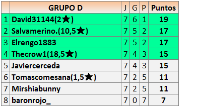En el grupo D, en la partida Mirshiabunny – Salvamerino, me pareció entender que Salvamerino había puesto seis letras,